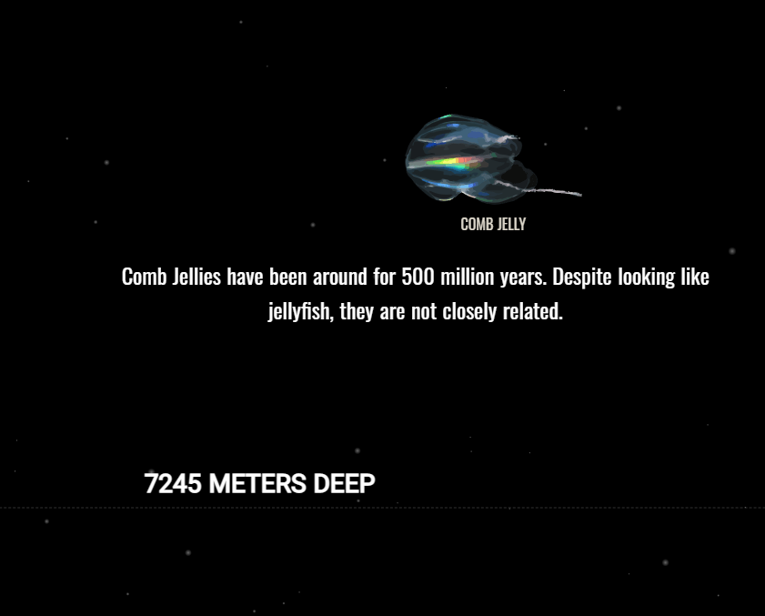 해당 사이트로 들어가서 밑으로 계속 스크롤 하시면 수면 깊이마다 어떤 바다 생물이 살고 있는지 이미지와 함께 알려주는 사이트입니다. 심심할 때마다 들어가서 보곤하는데 생각보다 신기하게 생긴 생물들이 많이 살고 있더군요 ㅎㅎ